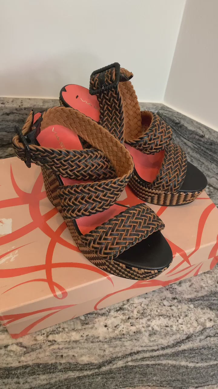 Via Spiga Kagan Strappy Platform Woven Wedges Black/Camel Sz 8 NIB
